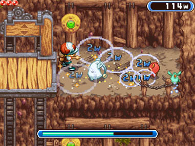 Получив несколько Омег, G.G говорит Каю, что не знает пути назад. Сельский житель сообщает, что село опустошено Омегой (первым боссом). После победы над Омегой мэр села вручает игроку карту, оказывающуюся картой между 2-мя мирами. Используя карту, герои попадают в Шахту Элебитов. Кай встречает группу детей, носящих название Банды озорников (Pickle Gang); эта банда занимается поиском сокровищ. Кажется, что они потеряли 2-х членов и своего Омегу. Нахождение этих персонажей и лидера Тото обеспечивает игрока картой. Исследуя шахту, герои находят близнецов Луи и Лу. Экран начинает раскачиваться, и близнецы пытаются спастись, пока игрок сражается с боссом.