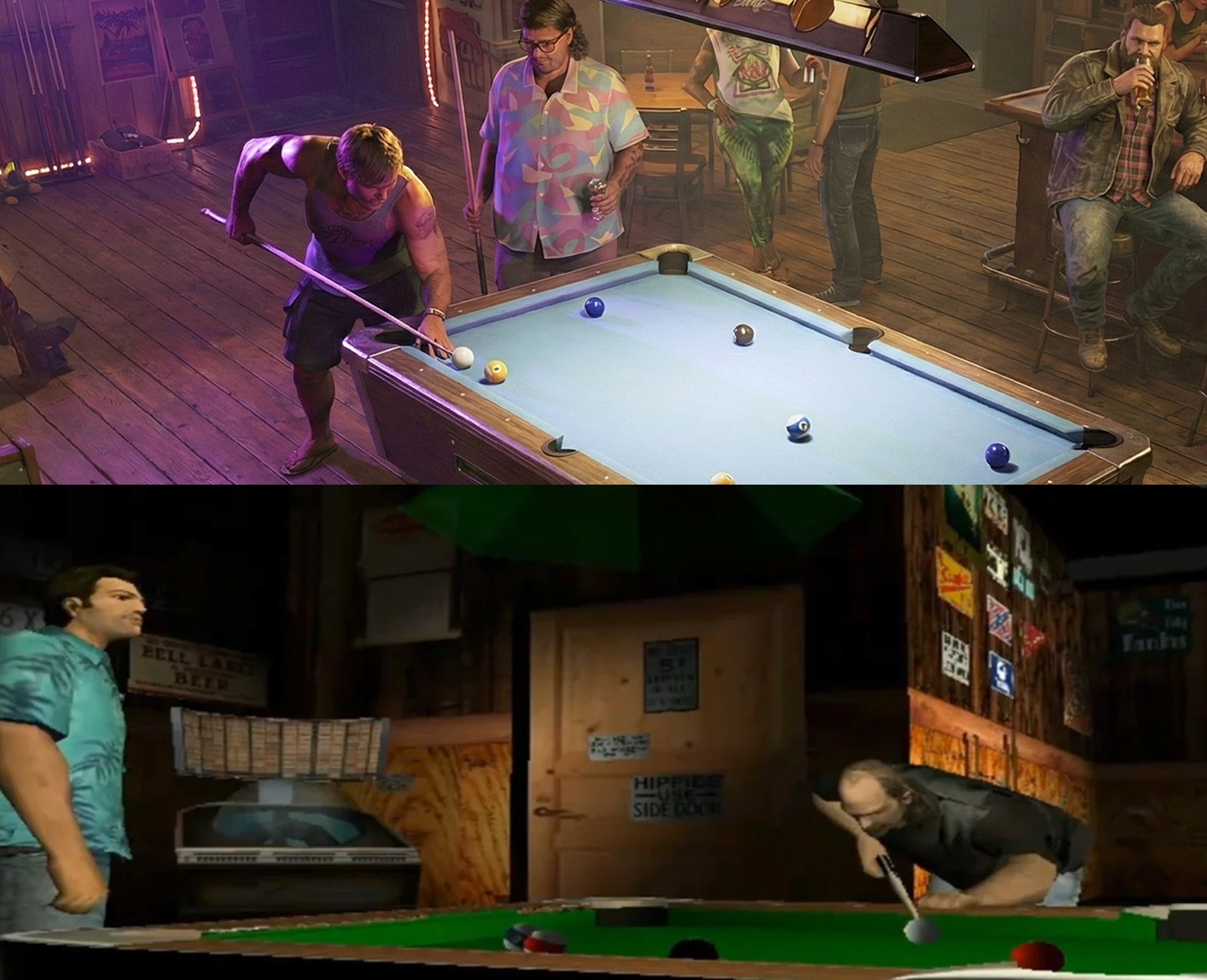 В ожидании новостей поклонники продолжают занимать себя изучением всех официальных кадров по Grand Theft Auto 6, которые доступны на данный момент. Пользователь wasservilla с форума Reddit решил сравнить имеющиеся изображения города Вайс-Сити с его прошлой версией из игры Grand Theft Auto: Vice City. «Мы действительно проделали долгий путь», — написал wasservilla и выложил несколько сравнительных изображений. На представленных кадрах игрок сравнил бары, пирсы, некоторые знаковые места из Вайс-Сити, бассейны на крышах домов, высотные здания и даже байкеров. Кроме того, пользователь выложил еще и два кадра, на которых главные герои обеих частей разъезжают на гидроциклах.