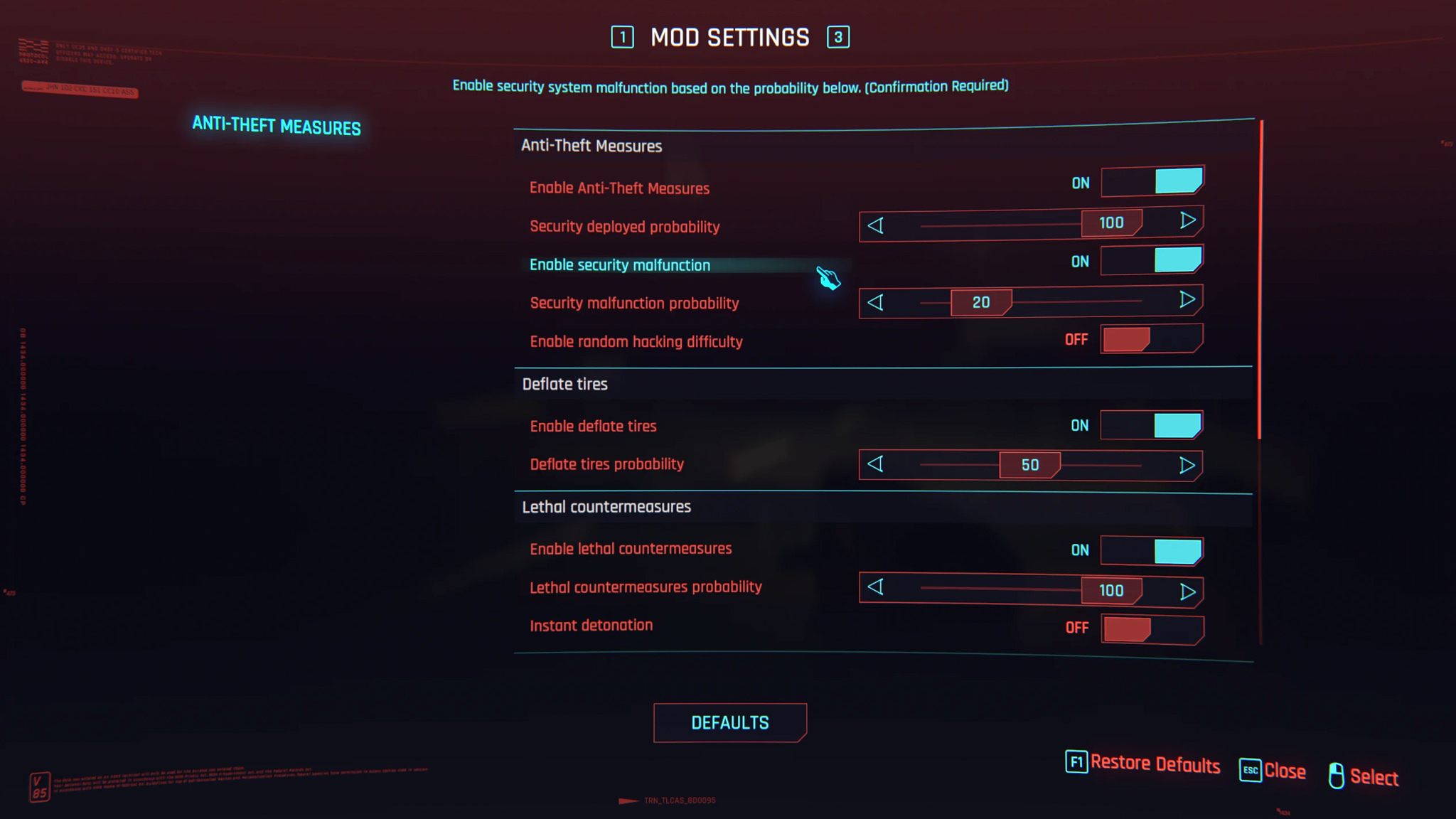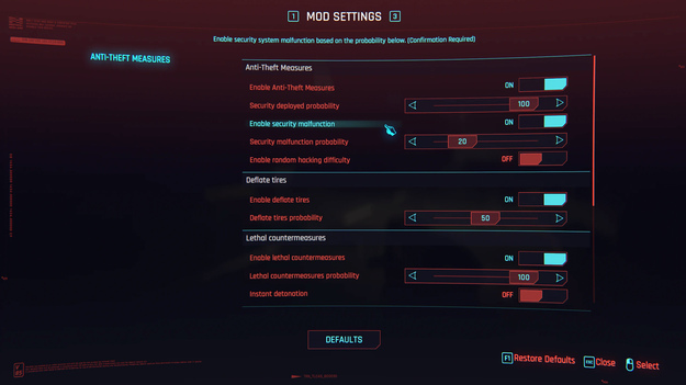 Модификация Anti-Theft Measures точно сможет удивить игроков, пытающихся завладеть чужим автомобилем, самыми разными неожиданностями. К примеру, машина в Cyberpunk 2077 теперь может самостоятельно спустить шины, а еще в ней может оказаться детонирующее устройство. Помимо прочего, автомобиль может оповестить сотрудников безопасности и вывести из строя некоторые системы Ви. Автор не забыл и о громкой сигнализации, которая будет звенеть на всю улицу. Ко всему прочему система безопасности автомобиля может взломать банковский счет Ви и забрать у него часть денег. Также стоит добавить, что даже при успешном открытии системы нет гарантий для того, что она не перезагрузится втихую и начнет по итогу проворачивать свои фокусы.
